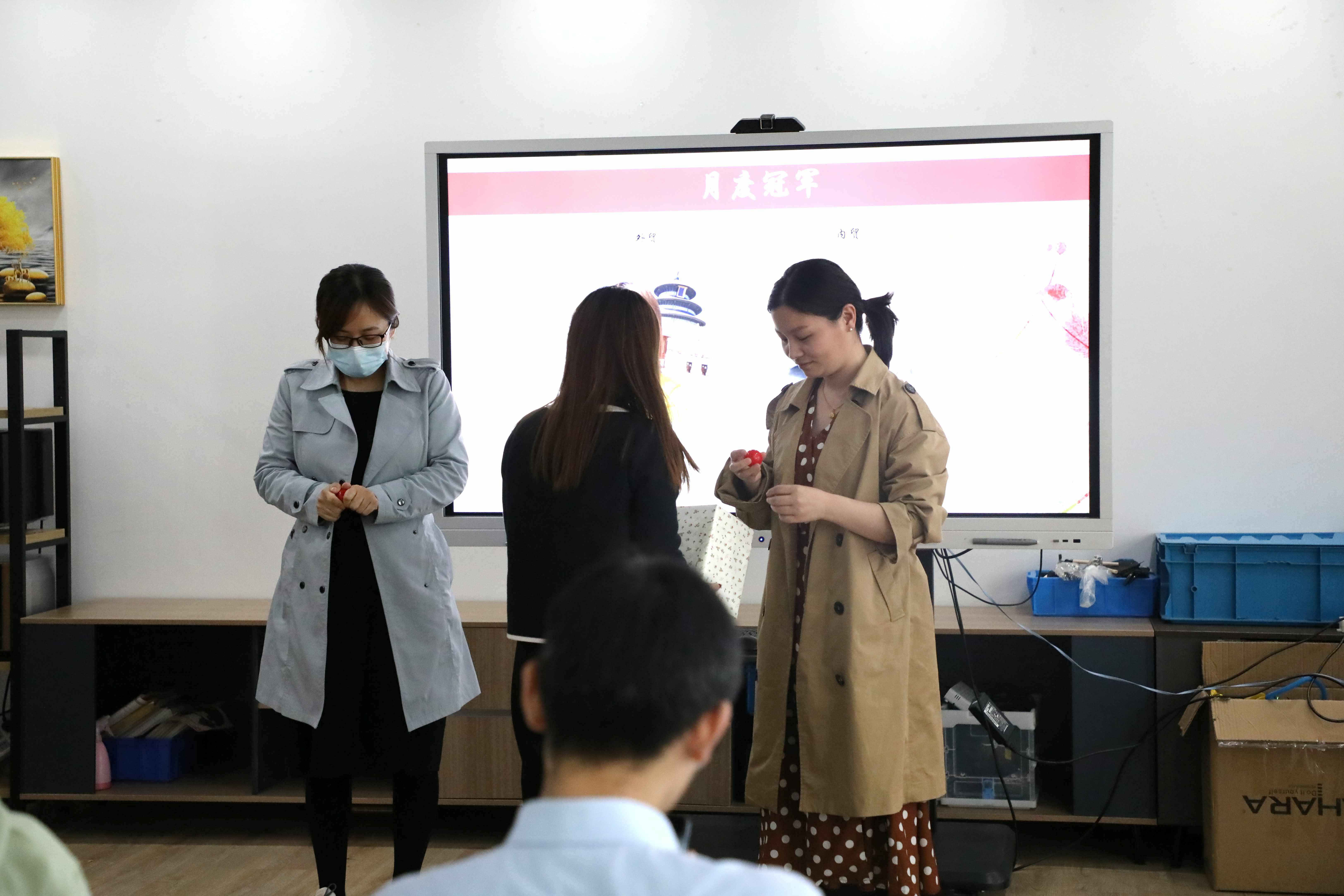 本次月会一共五个环节,第一部分是迎新环节,第二部分是领导致辞,第三部分是月度冠军表彰环节,第四部分是生日会,第五部分是游戏环节。